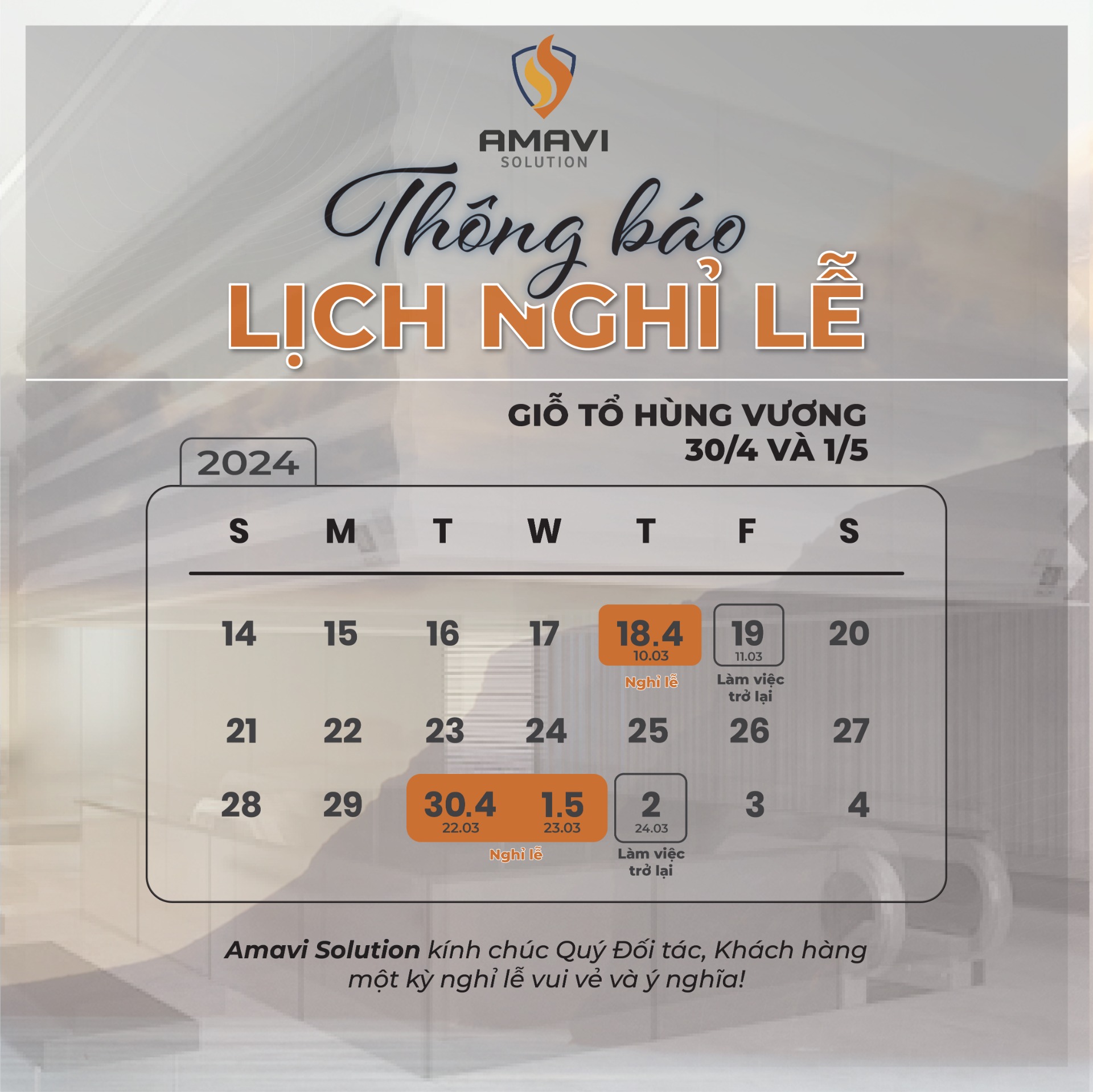 NOTICE OF HOLIDAY SCHEDULE FOR HUNG KING'S COMMEMORATION DAY AND APRIL 30TH - MAY 1ST