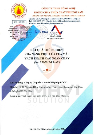 Vách thạch cao ngăn cháy EI60_Mã hiệu: AMVS