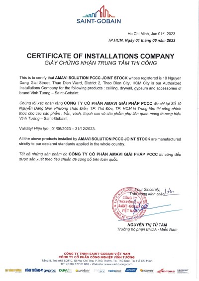 CHỨNG NHẬN ĐẠI LÝ SAINT-GOBAIN